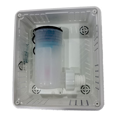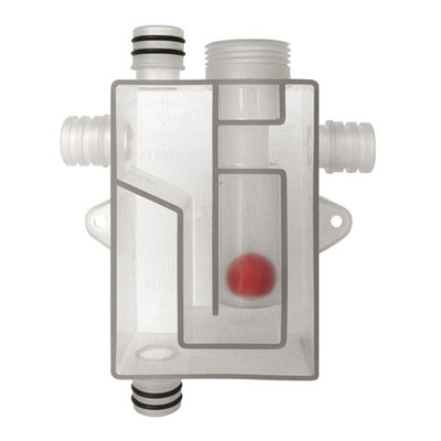 Отличается от обычного сифона наличием клапана сухого хода, который во время простоя кондиционера, когда вода высыхает, закрывается препятствуя выходу запаха канализации в кондиционер и помещение.